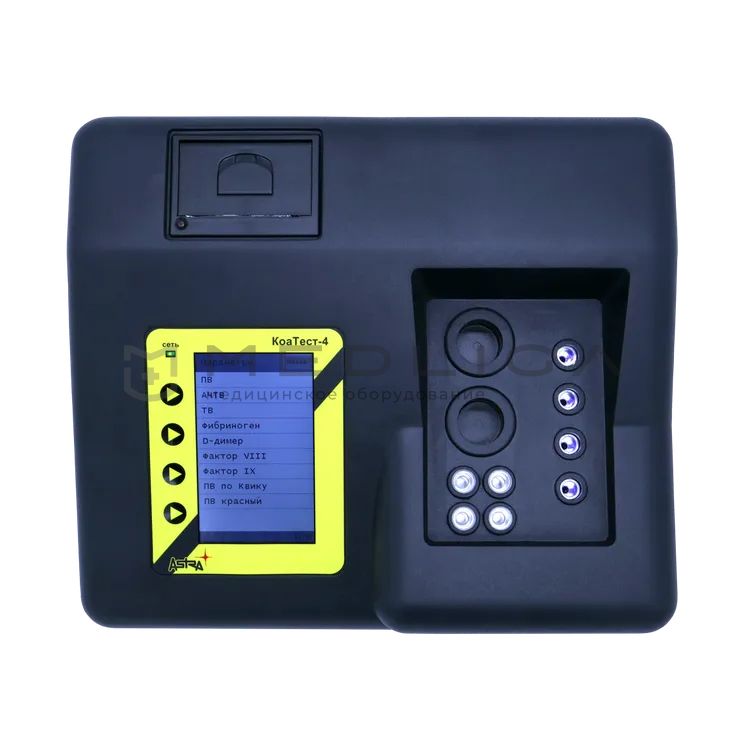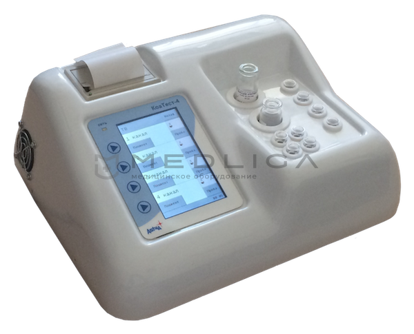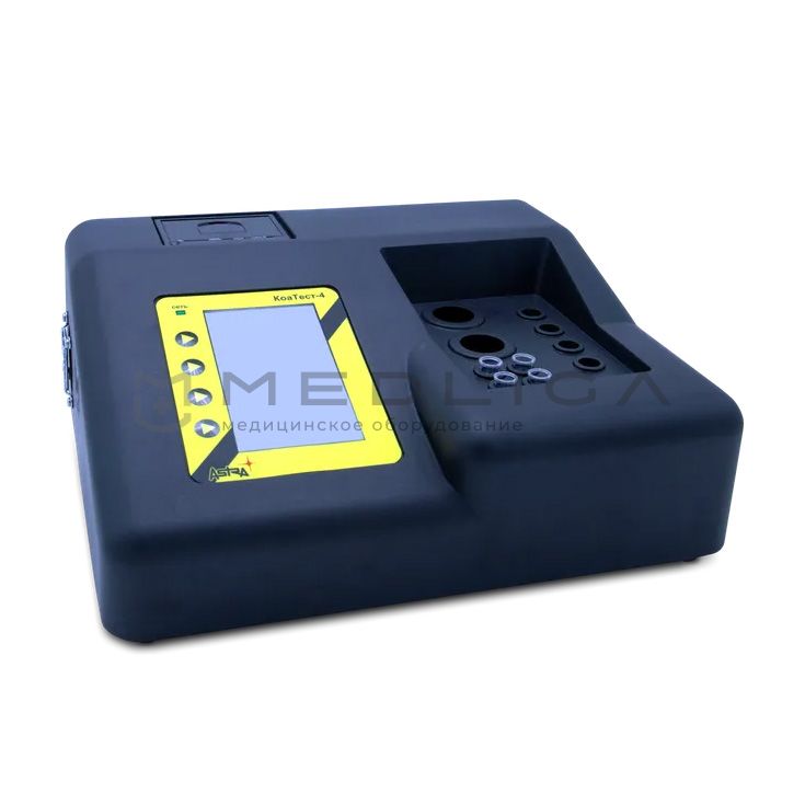 Полуавтоматический четырехканальный коагулометр, предназначен для определения в плазме крови основных параметров гемостаза: ПВ, ТВ, АЧТВ и концентрации фибриногена. Методы определения: клоттинговый и иммунотурбидиметрический.