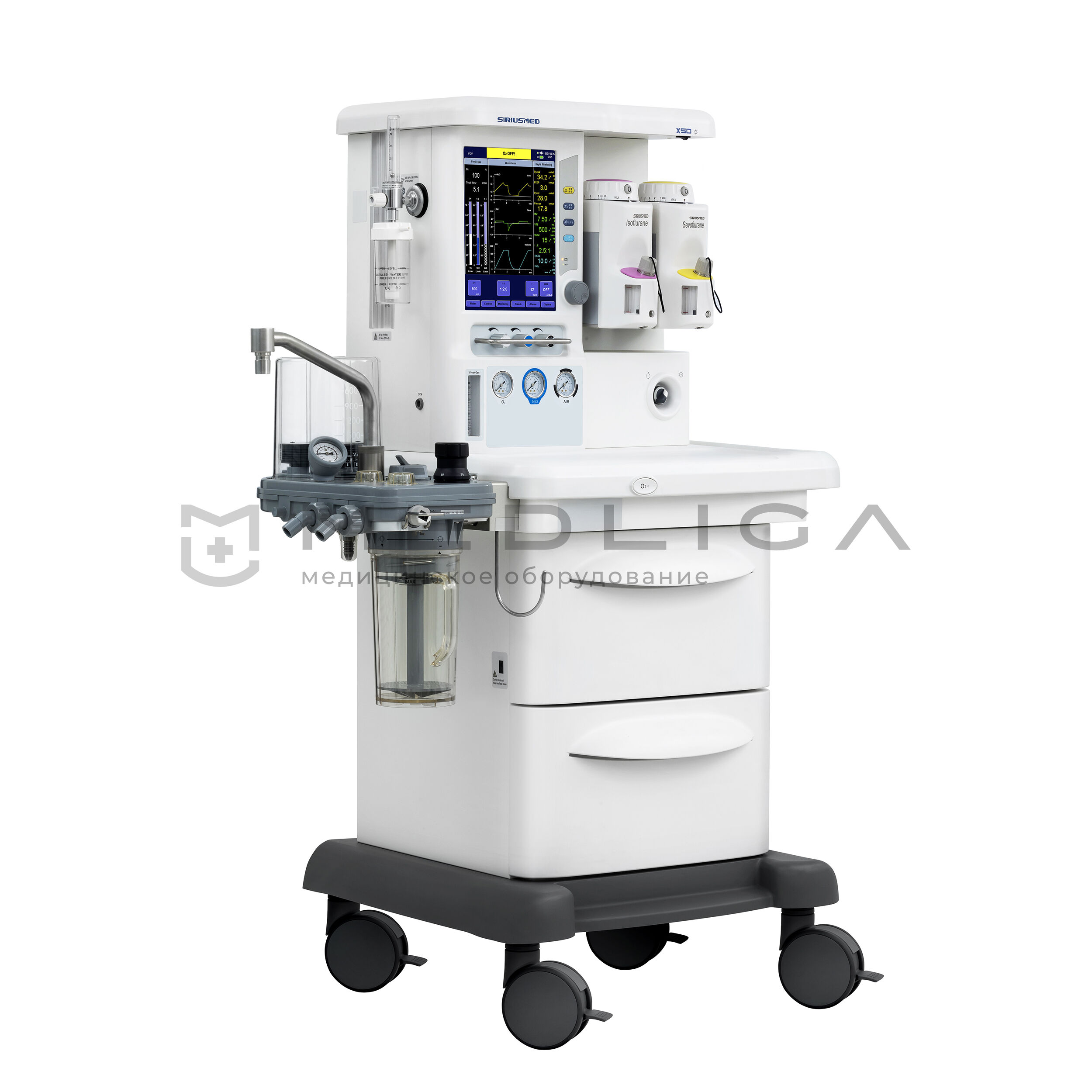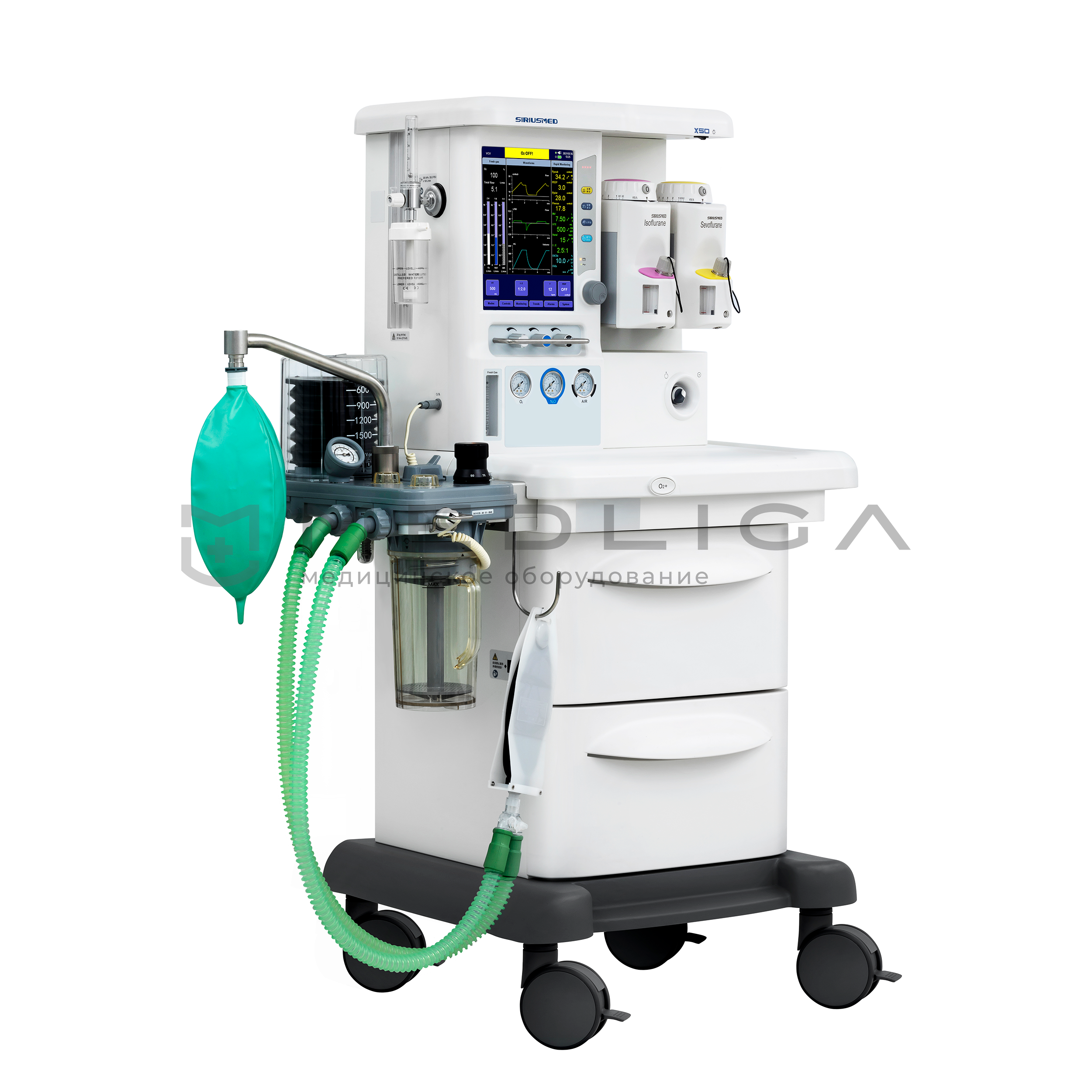 Аппарат наркозно-дыхательный Maja Х50 с электронными ротаметрами и мультигазовым мониторингом. Для всех групп пациентов. Работа по полузакрытому, закрытому и полуоткрытому контуру.