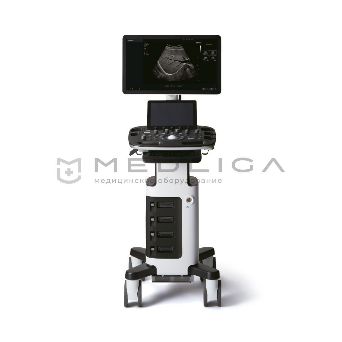В многопрофильном кабинете УЗИ применяются стационарные сканеры с 3-4-5 портами для каждого вида датчиков.
