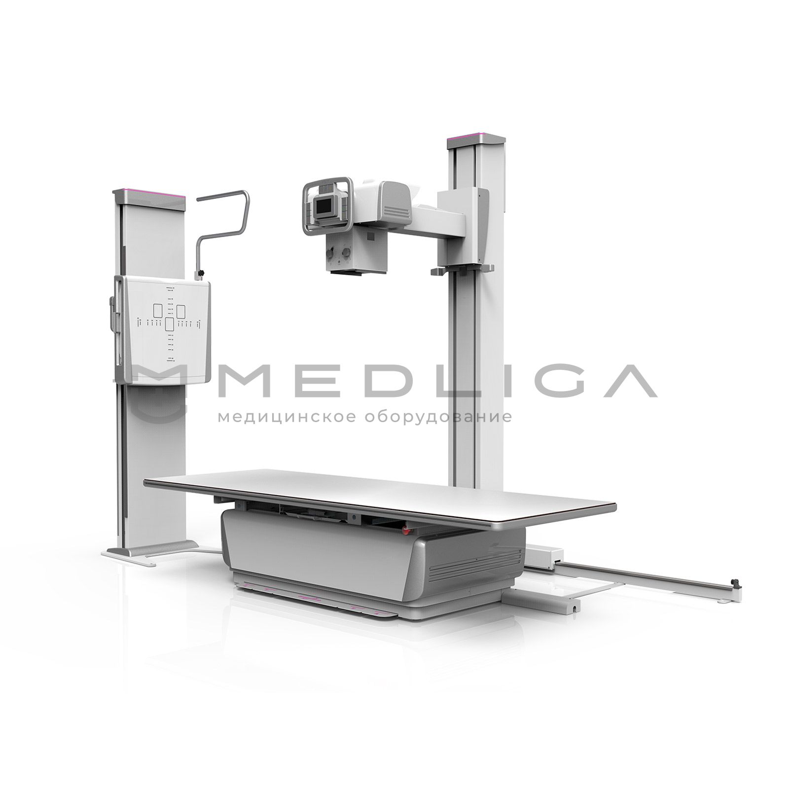 • Использование цифрового приёмника рентгеновского изображения с оптимальным соотношением качества рентгеновского изображения и цены позволяет одновременно использовать два цифровых детектора: в столе снимков и вертикальной стойке снимков;