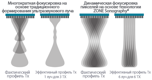 Это инновационная технология обработки данных. Благодаря преобразованию ультразвуковых параметров, полученных при традиционном формировании ультразвукового пучка, с помощью канального представления данных технология ZST+ предоставляет многочисленные инновационные решения для получения изображения: