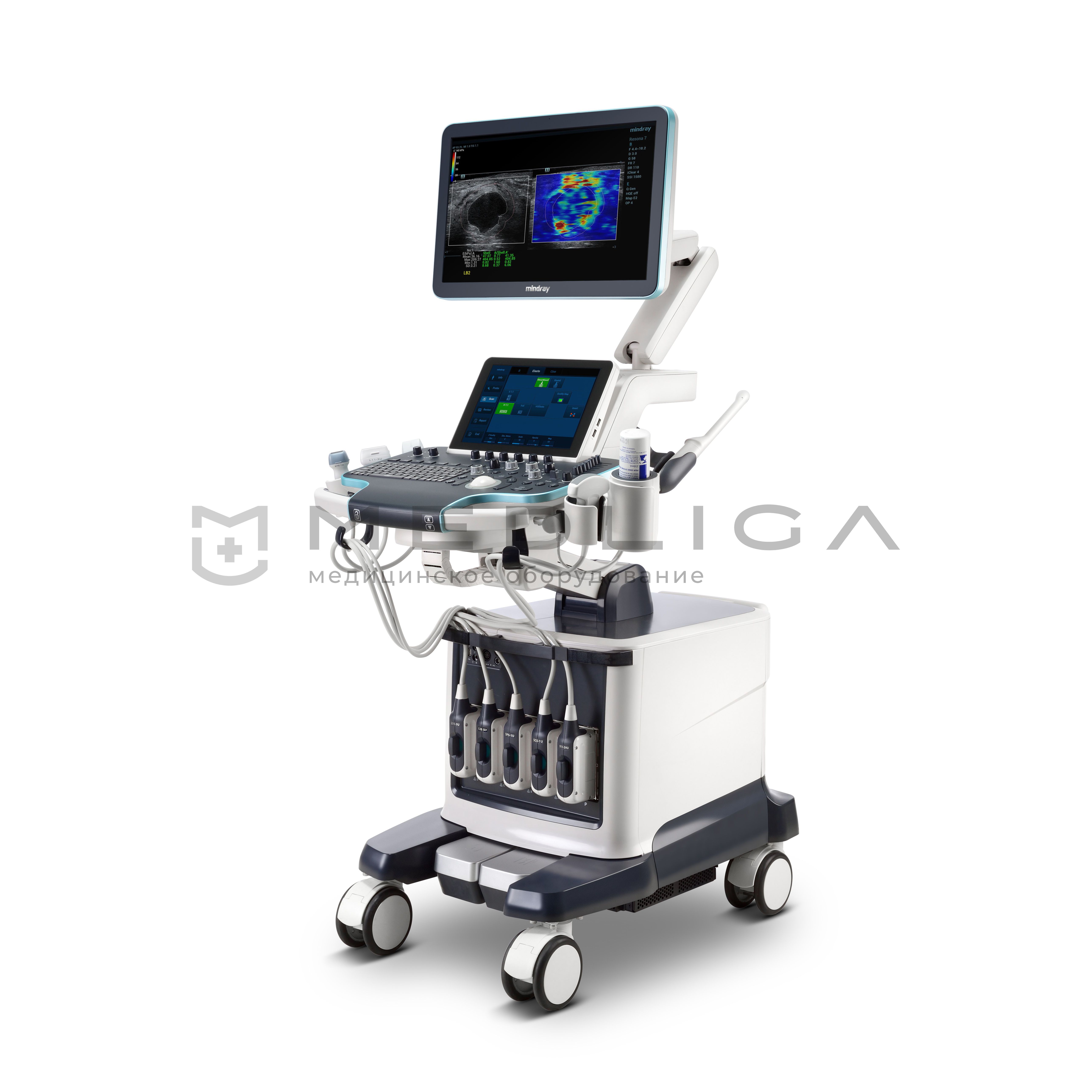 Mindray Resona 7 – ультразвуковая диагностическая система премиум-класса на платформе ZST+. Совместная разработка Mindray и Zonare (США). Данное устройство отличается высоким качеством визуализации, которое стало возможным за счет инновационного зонного сканирования и благодаря канальной обработки данных.