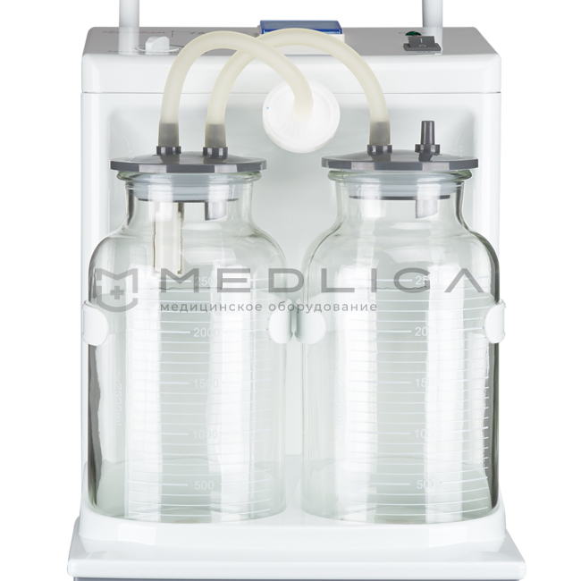 Крышка одной из 2-х стеклянных банок-сборников отсасывателя оснащена специальным поплавковым клапаном, предназначенным для защиты от перелива собираемой жидкости.