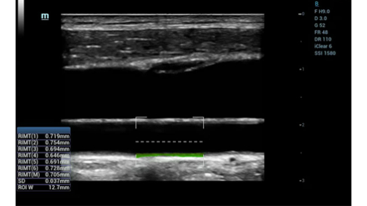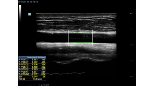 • Количественный анализ жесткости сосудов основан на радиочастотных данных и обеспечивает чрезвычайно точные расчеты растяжения сосудистой стенки